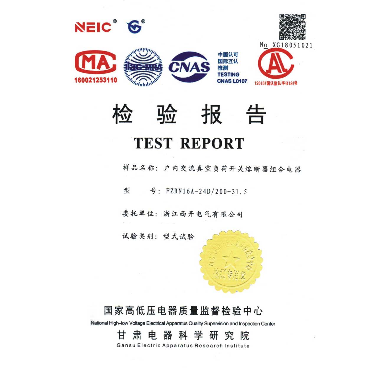 檢驗報告-戶內交流真空負荷開關熔斷器組合電器