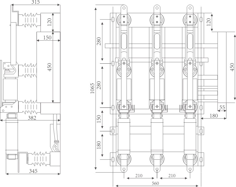 FN16A indoor AC M.V Vacuum load break switch are developed by our company The products follow GB3804-90《3-62kV AC H.V load switch》and IEC62271《 AC H.V. indoor load break switch-fuse combinations》 (2002 edition). These switches are small volume, beautiful appearances, flexible installation, and easy operation. This switch applied for the 50/60Hz, 6-24kV Power distribution system. It can break on load current, and fuse combination can break the over load current and short circuit current. Load break switch with-fuse combinations are also used for protecting over load of transformer and avoiding short-circuit current.