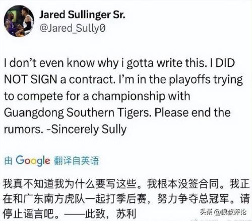 隨著輿論發酵,薩林杰本人在社媒做出回應表示:我真不知道為什么要寫這些,我根本沒有簽合同。我正和廣東華南虎一起打季后賽,努力爭奪總冠軍。請停止謠言吧。