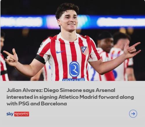 阿爾瓦雷斯當下的合同2030年到期,因此顯然馬競在談判中擁有優勢,根據西班牙方面的消息,要說服床單軍團出售阿爾瓦雷斯大約需要1億歐元的費用,這個價格可以讓阿根廷人成為賴斯之后,阿森納隊史第二貴的引援。